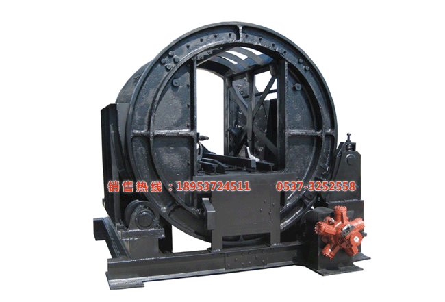 液壓圓形翻車機(又稱翻籠)是一種側(cè)面卸載的設(shè)備。它與前傾式翻車架相比,具有工作比較平穩(wěn),視需要可以設(shè)計為翻卸兩輛或兩輛以上的礦車,并能直接通過,待卸的列車也可以不必摘鉤,所以生產(chǎn)能力較大。