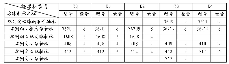 給煤機型號 滾珠軸承名稱 K0 K1 K2 K3 K4