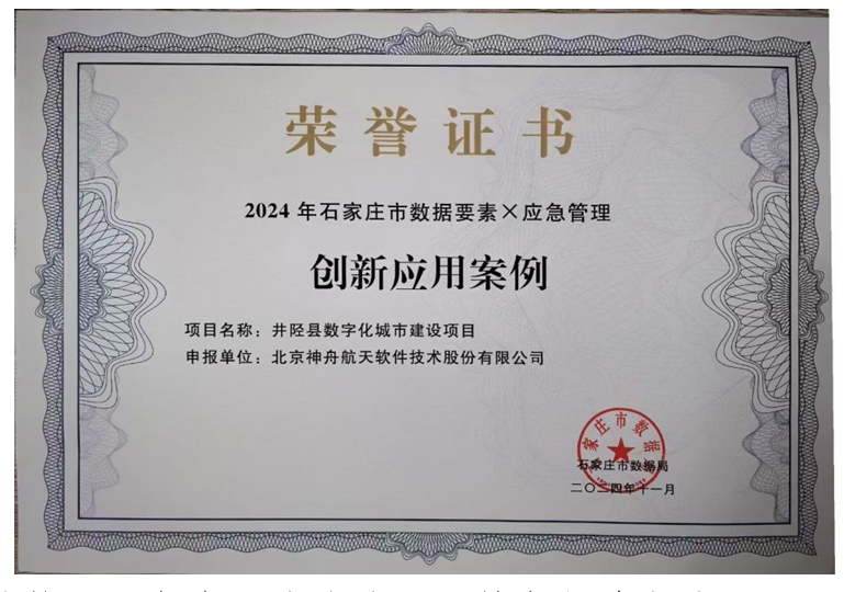 近日,神軟公司承建的井陘縣數(shù)字化城市建設項目,榮獲2024年石家莊市數(shù)據(jù)要素X應急管理創(chuàng)新應用案例獎項。此獎項是依據(jù)《“數(shù)據(jù)要素X”三年行動計劃(2024-2026年)》的要求,由國家數(shù)據(jù)局、中央網(wǎng)信辦、工業(yè)和信息化部等有關部門聯(lián)合通過2024年“數(shù)據(jù)要素X”大賽選拔。
